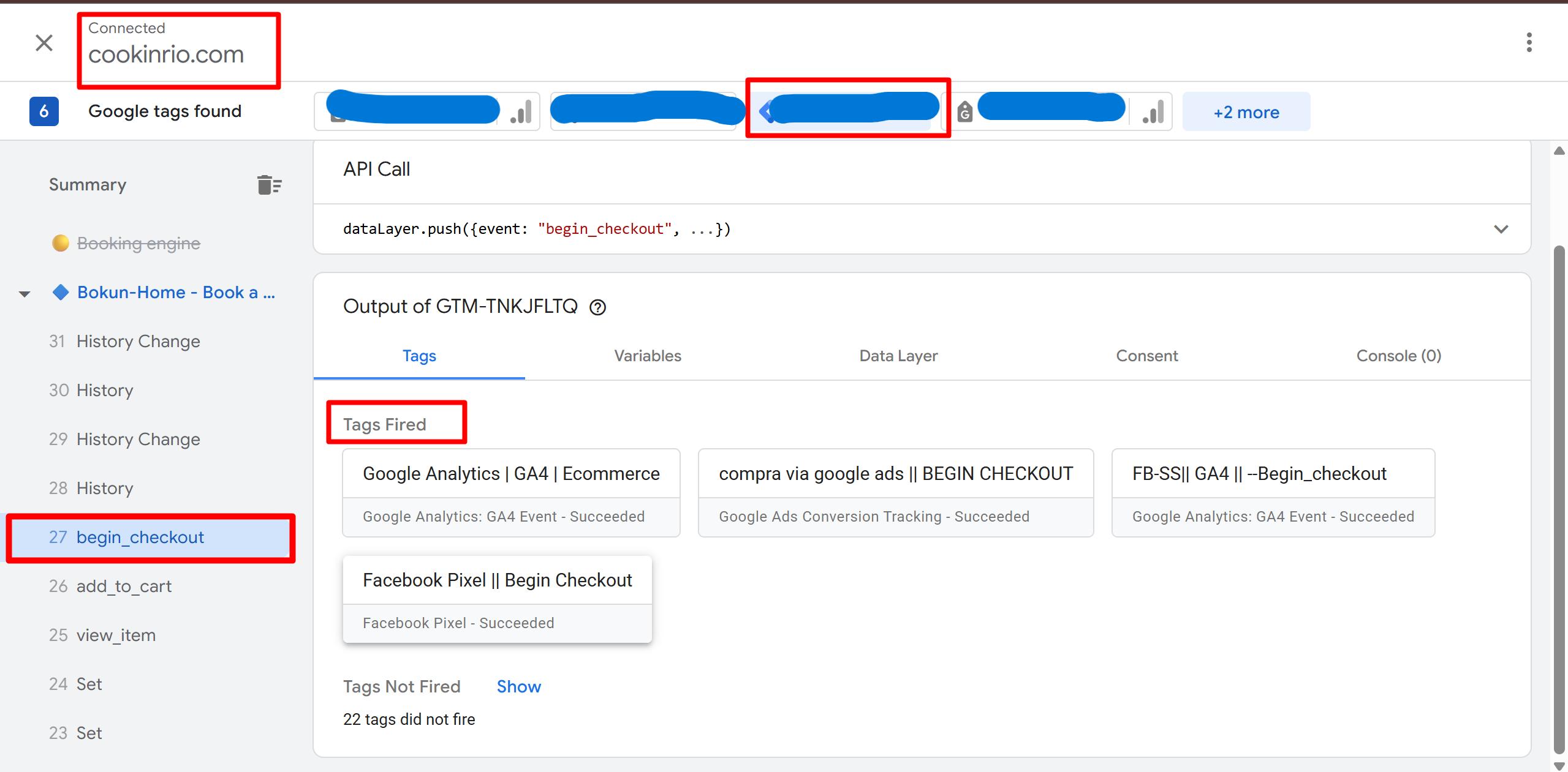 Mapping the User Journey: Identifying all key conversion points, including ” Purchase event when Booking Completed,” “Begin_checkout,” and “Add to Cart.”