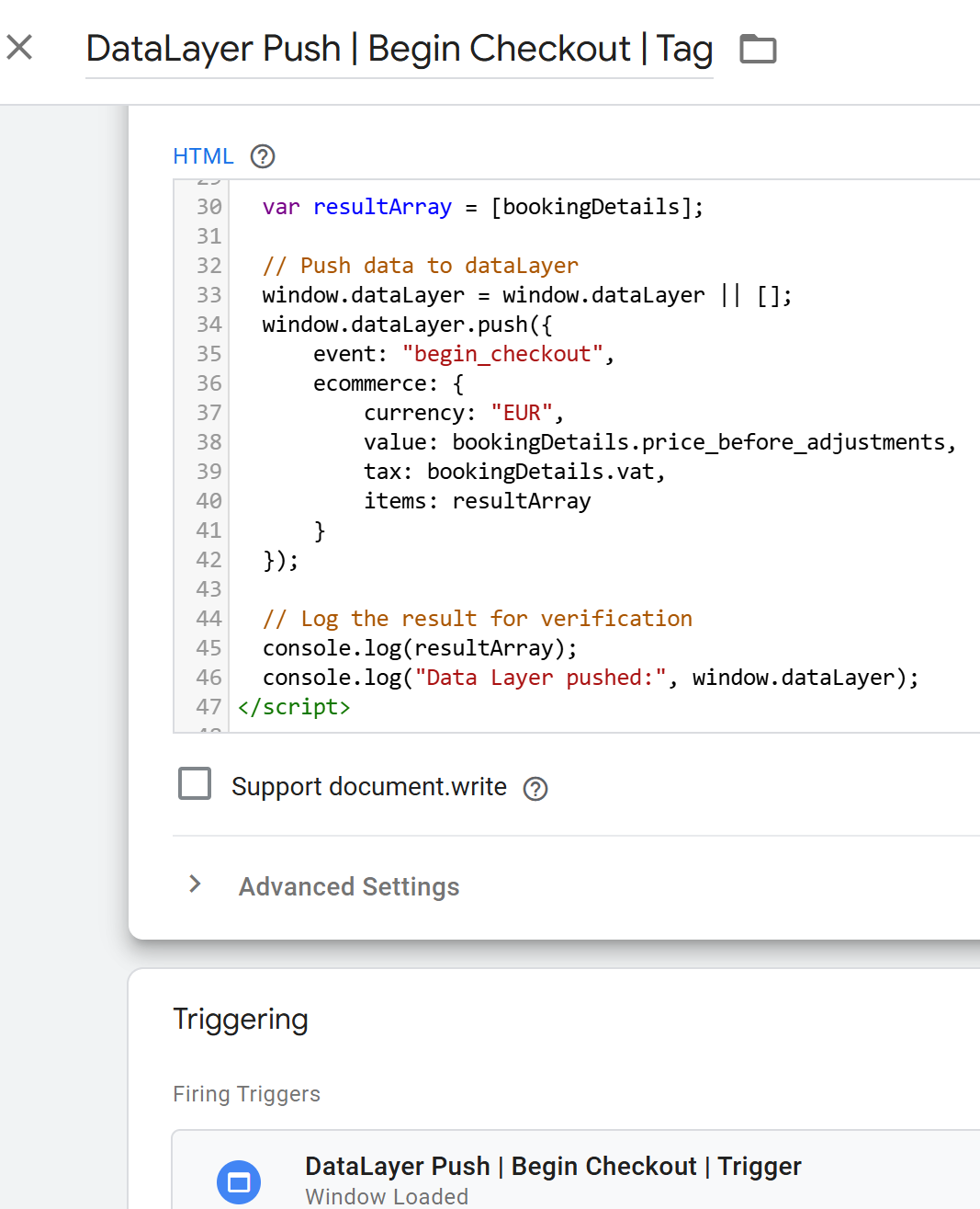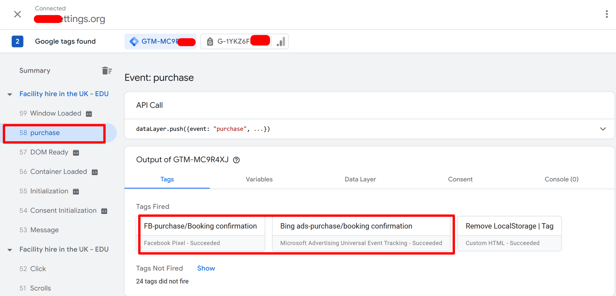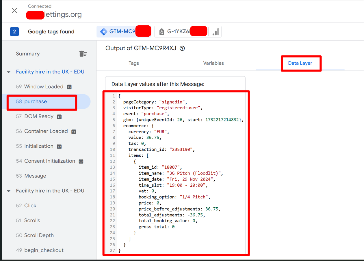 - GTM Preview Mode: Used GTM’s preview mode to test the setup, ensuring that tags and triggers fired correctly upon slot booking confirmation.