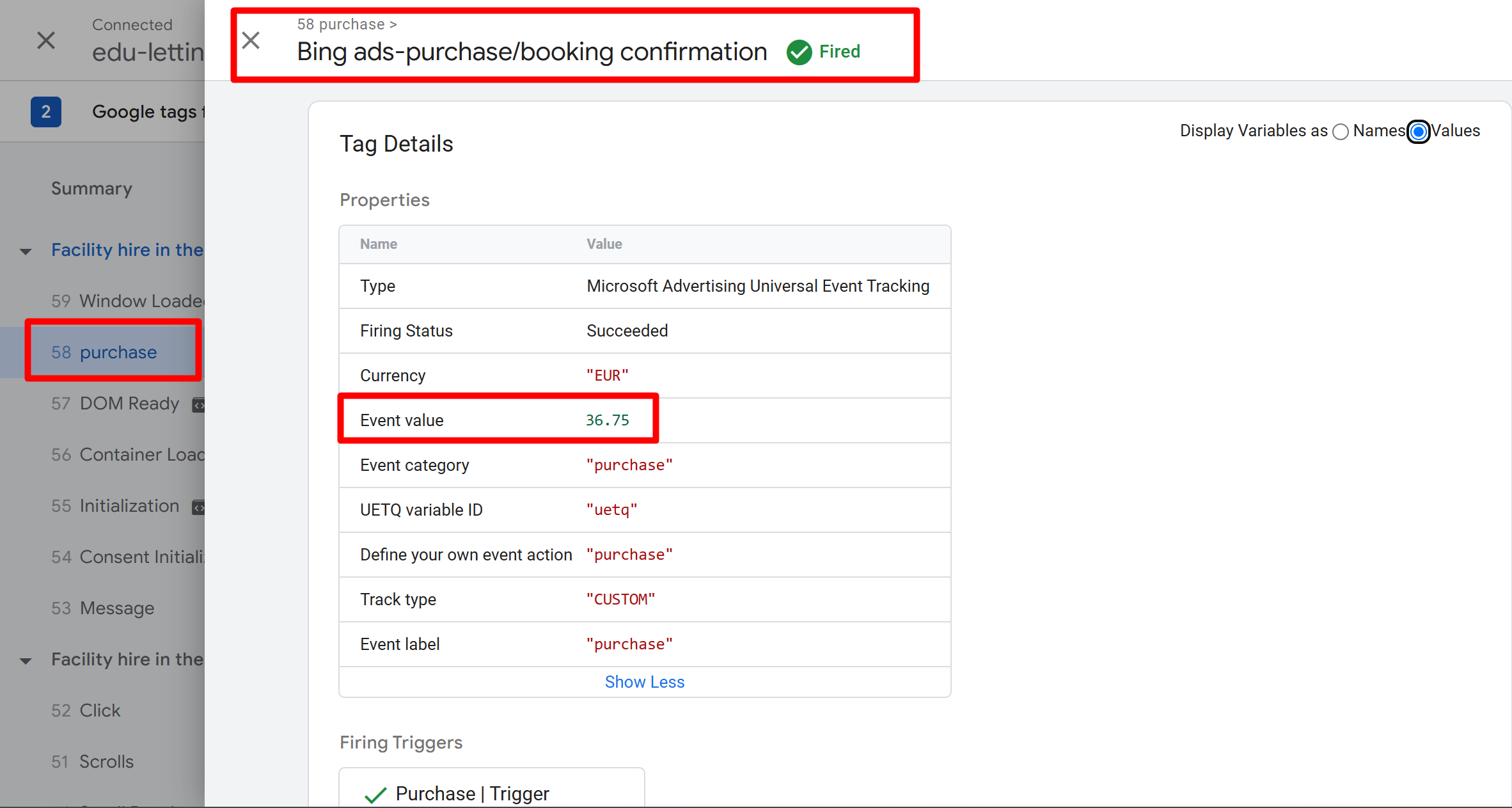 - Enter Conversion ID and Label: Entered the Bing Ads conversion ID and label required for tracking slot booking confirmations.